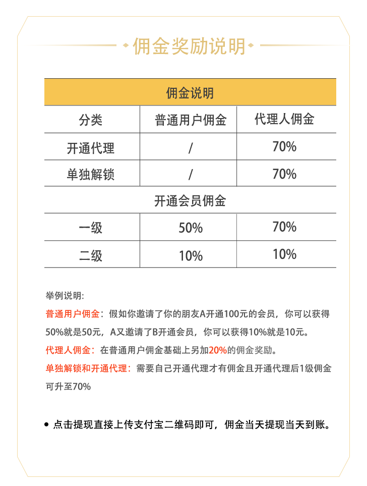 1级代理:50%佣金